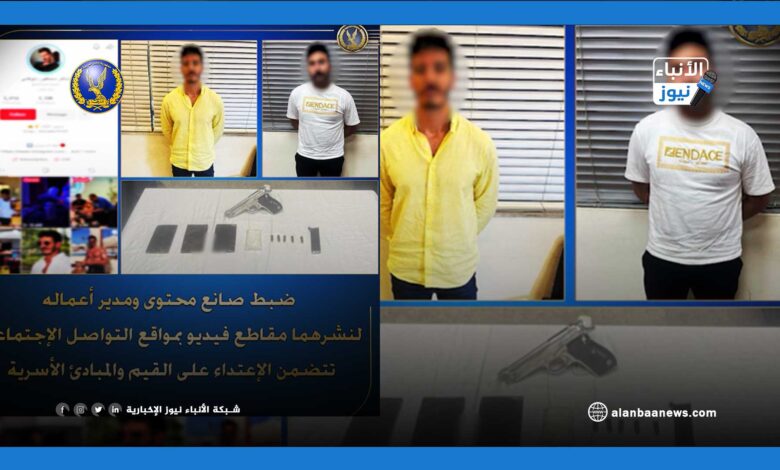 القبض على تيكتوكر شهير ومدير أعماله في القاهرة.. بحوزتهما سلاح ناري ومخدرات بعد بلاغات بالإساءة للقيم الأسرية