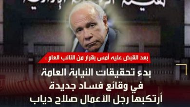بعد القبض عليه أمس بقرار من النائب العام : بدء تحقيقات النيابة العامة في وقائع فساد جديدة أرتكبها رجل الأعمال صلاح دياب