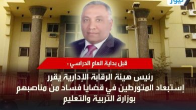 قبل بداية العام الدراسي : رئيس هيئة الرقابة الإدارية يقرر إستبعاد المتورطين في قضايا فساد من مناصبهم بوزارة التربية والتعليم