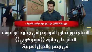 إبن عائلة الفنان عزت أبو عوف بالأسكندرية : الأنباء نيوز تحاور الفوتوغرافي محمد أبو عوف الحائز على جائزة ((فوتوكوبي)) في مصر والدول العربية