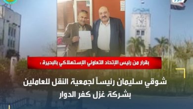 بقرار من رئيس الإتحاد التعاوني الإستهلاكي بالبحيرة : شوقي سليمان رئيساً لجمعية النقل للعاملين بشركة غزل كفر الدوار