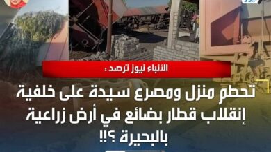 الأنباء نيوز ترصد : تحطم منزل ومصرع سيدة على خلفية إنقلاب قطار بضائع في أرض زراعية بالبحيرة ؟!!
