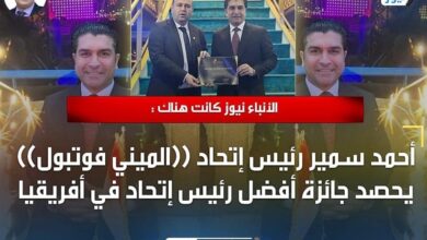 الأنباء نيوز كانت هناك : أحمد سمير رئيس إتحاد ((الميني فوتبول)) يحصد جائزة أفضل رئيس إتحاد في أفريقيا