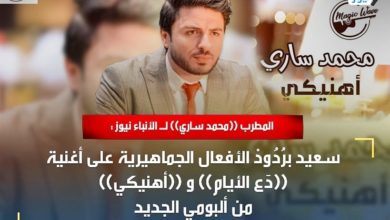 في تصريحات خاصة للصفحة الفنية لـ الأنباء نيوز أكد المطرب الشاب محمد ساري سعادته ، بردود الأفعال ، في الساعات…