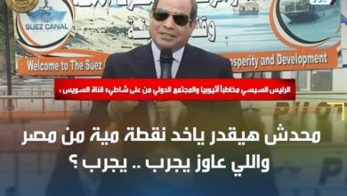 الرئيس السيسي مخاطباً أثيوبيا والمجتمع الدولي من على شاطيء قناة السويس : محدش هيقدر ياخد نقطة مية من مصر واللي عاوز يجرب .. يجرب ؟