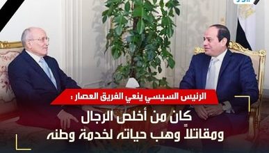الرئيس عبد الفتاح السيسي يُغرد على تويتر ناعياً فقيد مصر الفريق العصار وزير الدولة للإنتاج الحربي