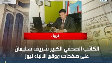 قريباً : الكاتب الصحفي الكبير شريف سليمان على صفحات موقع الأنباء نيوز
