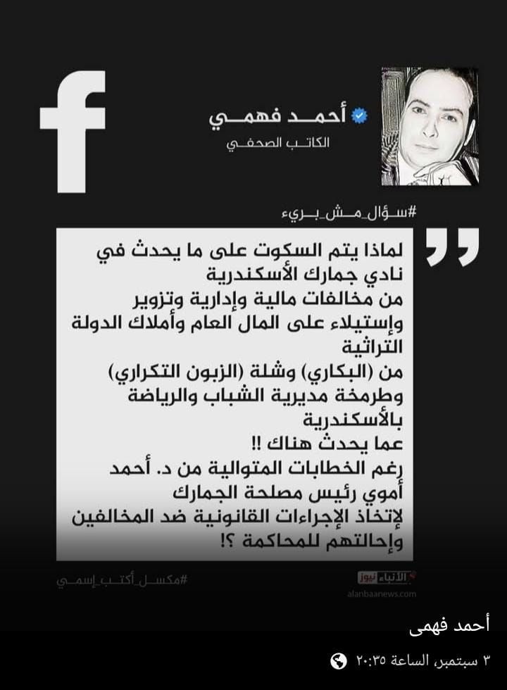 وكان مجلس إدارة نادي جمارك الأسكندرية برئاسة مجدي البكاري قد تحرر ضده محاضر بالجملة منذ عام 2021 بعد قراره بشطب الآلاف من أعضاء الجمعية العمومية لنادي الجمارك حتى أصبحت 200 فرد فقط من أقاربه ومحاسيبه للإستيلاء على النادي تحت رعاية الشحات الغتوري رئيس مصلحة الجمارك السابق الذي أسقط مصلحة الجمارك ونواديها الرياضية بالقاضية .