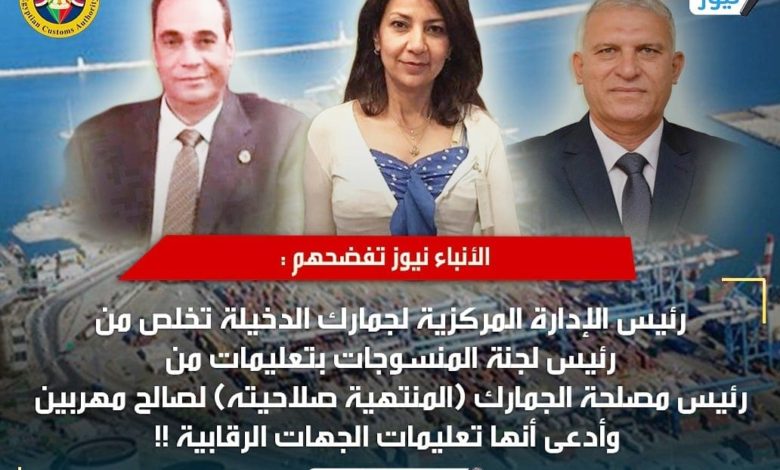 الأنباء نيوز تفضحهم : رئيس الإدارة المركزية لجمارك الدخيلة تَخلّص من رئيس لجنة المنسوجات بتعليمات من رئيس مصلحة الجمارك ((المُجمدة صلاحياته)) و ((والمنتهي ندبه لمنصبه)) لصالح مُهربين وأدعى أنها ((تعليمات)) الجهات الرقابية !!