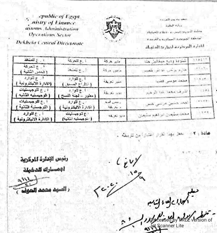 وكان السيد العوف رئيس الإدارة المركزية لجمارك الدخيلة قد وقع قراراً بتاريخ 14 سبتمبر لم يحمل أي أرقام أو أسباب أو دباجة للقانون مثل القرارات المُتبعة ((وسط 6 أسماء تم نقلهم بينهم رئيس لجنة المنسوجات)) بل وفي اليوم التالي لتوقيع رئيس الإدارة المركزية لجمارك الدخيلة قام السيد نجم رئيس مصلحة الجمارك ((المُجمدة صلاحياته)) و ((المنتهي مُدة ندبه في منصبه)) بالتوقيع على القرار في 15 سبتمبر الجاري 2020 مُزيلة بعبارة لامانع !!