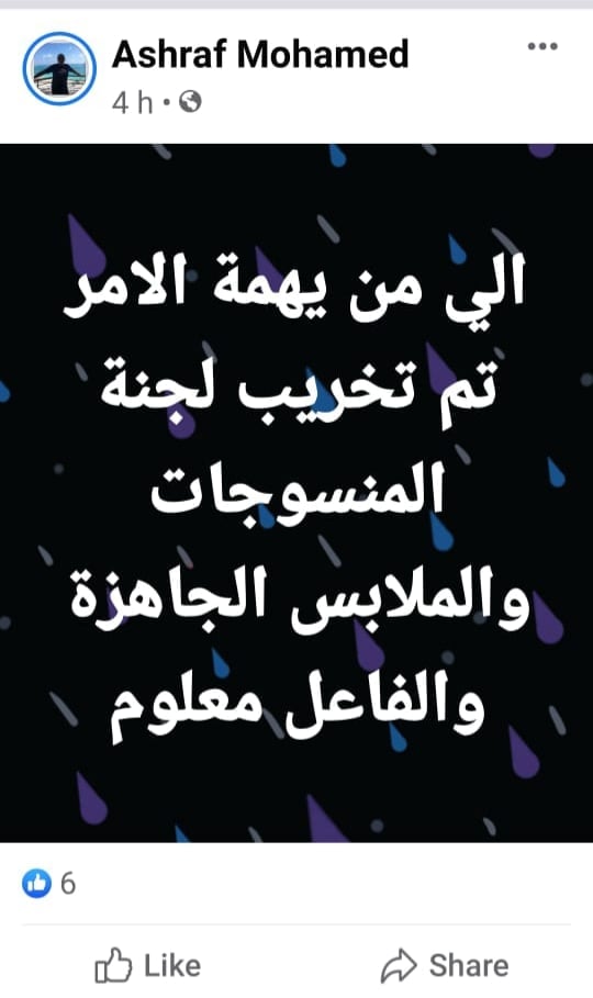 رئيس لجنة المنسوجات نشر ((الفضيحة)) على صفحته الشخصية بشبكة فيسبوك التي أصبحت الملجأ الوحيد لكل مظاليم الإدارات المركزية للجمارك بالمواني !!