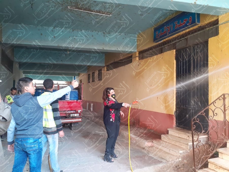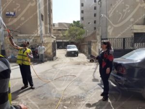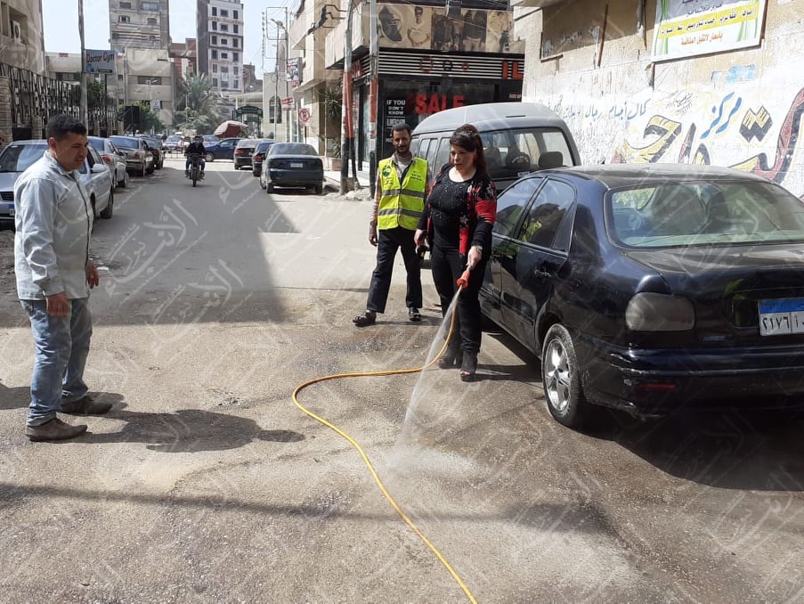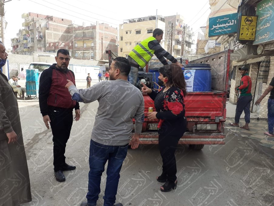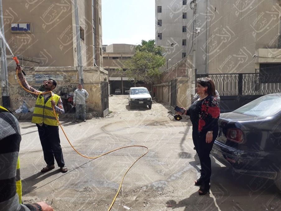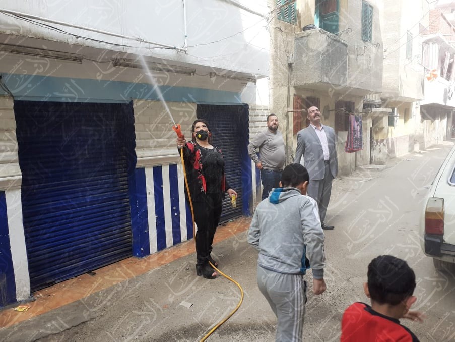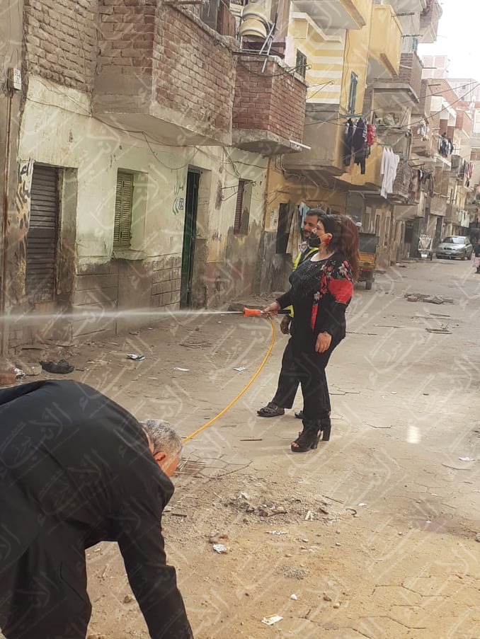 وأسرعت بإحضار الرش والمواتير اللازمة والكمامات والقفازات ونزلت بنفسها منطقة كفر الإشارة والمقابر ودار المٌسنين ومخازن الحدايد والخردة بالزقازيق .