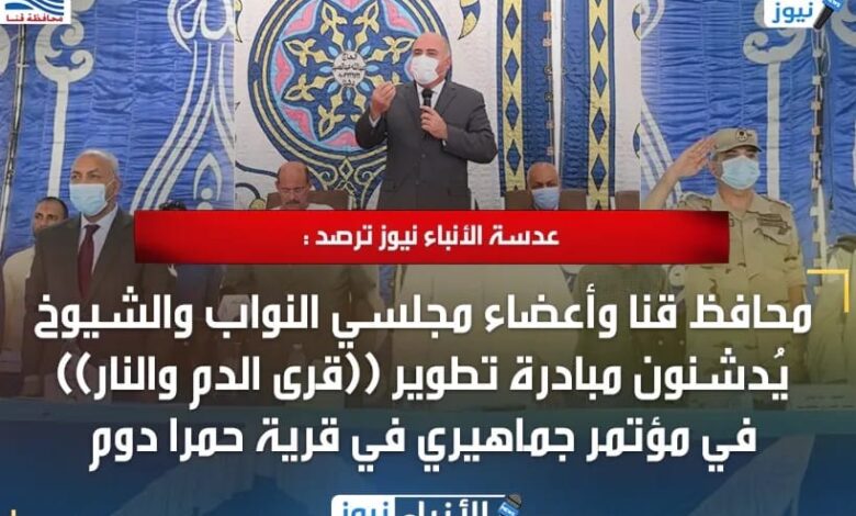 عدسة الأنباء نيوز ترصد : محافظ قنا وأعضاء مجلسي النواب والشيوخ يُدشنون مبادرة تطوير ((قرى الدم والنار)) في مؤتمر جماهيري في قرية حمرا دوم