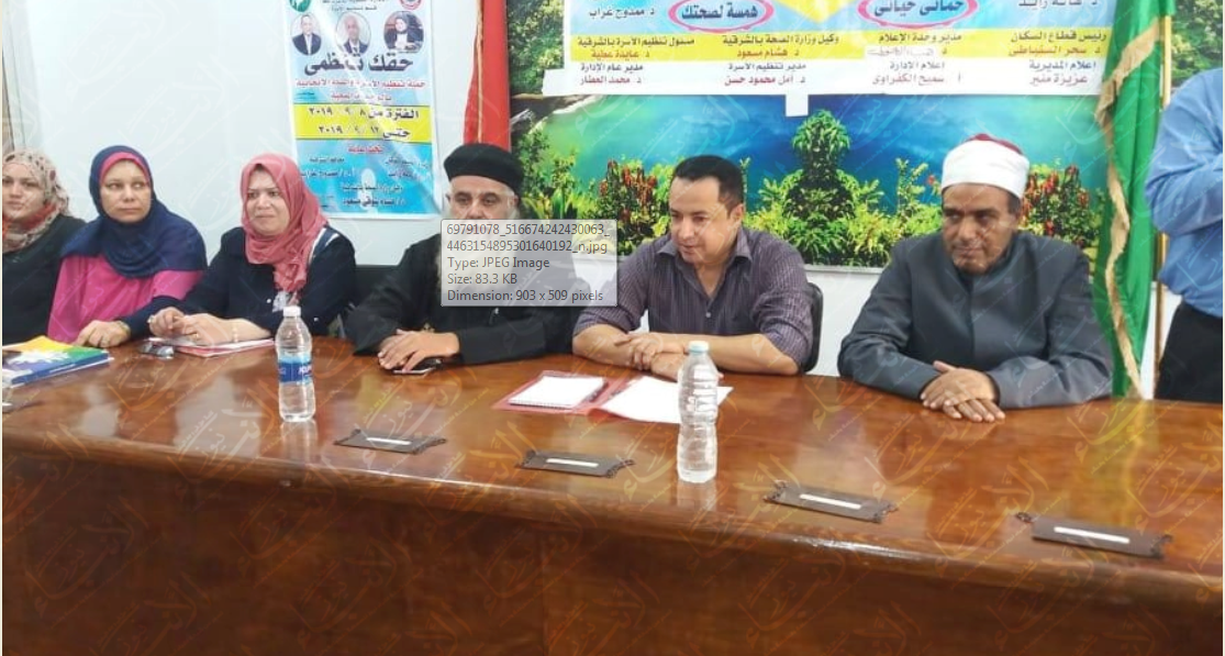 تم عقد ندوة عن تنظيم الأسرة وطرق الكشف المبكر من سرطان الثدي وطرق معالجته بمقر قاعة المؤتمرات برئاسة المركز ,بحضور فضيلة الشيخ سالم جلال عن وزارة الأوقاف وقداسة الأنبا غبريال ظريف راعي الكنيسة بديرب نجم وناقشت الندوة وناقشت الندوة طرق تنظيم النسل والطرق التي توفرها الدولة من اجل هذا وطرق معالجتها والكشف المبكر عن سرطان الثدي رئيس الجمهورية (أيامنا أحلى)
