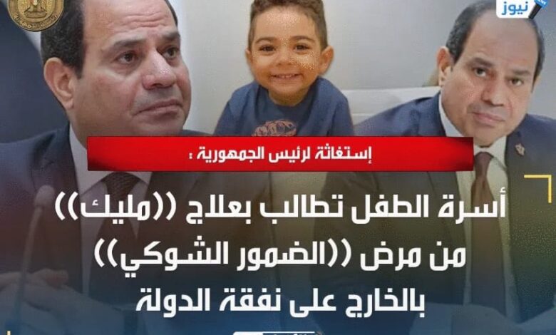 إستغاثة لرئيس الجمهورية : أسرة الطفل تطالب بعلاج ((مليك)) من مرض ((الضمور الشوكي)) بالخارج على نفقة الدولة