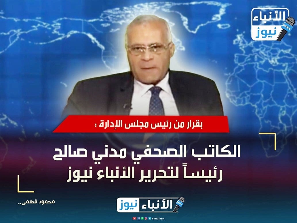 أصدر الكاتب الكبير أحمد فهمي رئيس مجلس إدارة الأنباء نيوز قراراً بتعيين الكاتب الصحفي مدني صالح رئيساً لتحرير الموقع الألكتروني أعتباراً من اليوم 19 أغسطس 2020 .