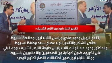 يتقدم الزميل محمد هادي مراسل الأنباء نيوز بمحافظة أسيوط بخالص الشكر والتقدير للواء عصام سعد محافظ أسيوط والدكتور محمد عبد…