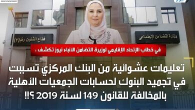 في خطاب الإتحاد الإقليمي لوزيرة التضامن الأنباء نيوز تكشف : تعليمات عشوائية من البنك المركزي تسببت في تجميد البنوك لحسابات الجمعيات الأهلية بالمخالفة للقانون 149 لسنة 2019 ؟!!