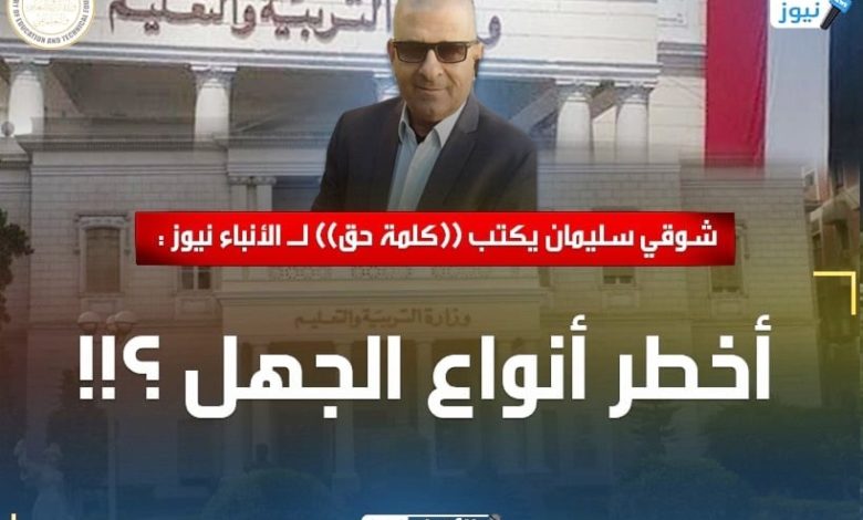 شوقي سليمان يكتب ((كلمة حق)) لـ الأنباء نيوز : أخطر أنواع الجهل ؟!!