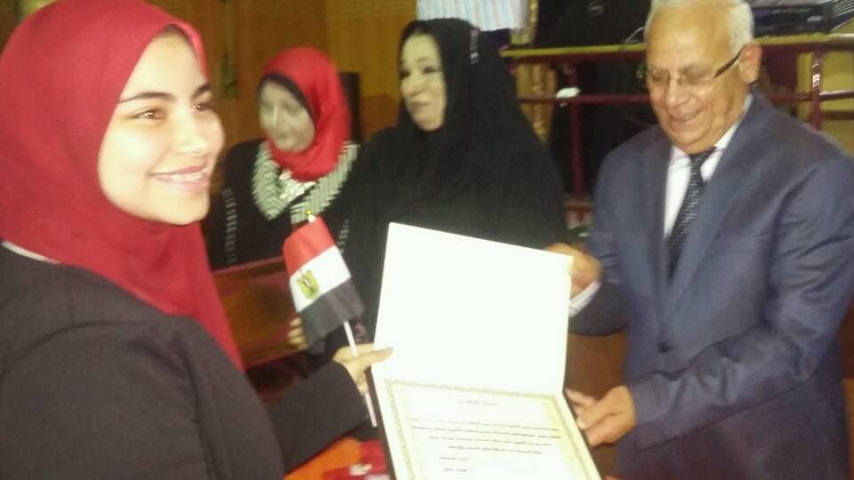 وافتتح الحفل بالسلام الجمهورى ثم كلمة مديرة المدرسة تلاها كلمة المحافظ والتى أكد فيها على إصراره بمحاربة الدروس الخصوصية والعودة لدور المدرسة الرئيسى لتكوين شخصية الطالب السوى وأن حجرات مراكز الدروس الخصوصية لا يمكنها أن تبنى شخصية مهذبة وقيمة .. وقام بتوزيع شهادات التقدير والأعلام المصرية على الطالبات فى أجواء من البهجة و الحبور .