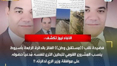 الأنباء نيوز تكشف : فضيحة نائب ((مستقبل وطن)) الفائز بالدائرة الرابعة بأسيوط ينسب المشروع القومي لتبطين الترع لنفسه مُدعياً حصوله على موافقة وزير الري لدائرته !