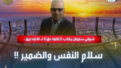 شوقي سليمان يكتب ((كلمة حق)) لـ الأنباء نيوز : سلام النفس والضمير !!