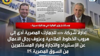 مستشار وزير المالية في مذكرة سرية : إدارة شركة mts للجمارك المصرية أدى إلى هروب الخطوط الملاحية وعزوف رجال الأعمال عن الإستيراد والتجارة وفرار المستثمرين من السوق المصرية ؟!!
