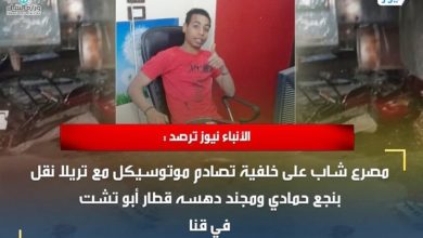 الأنباء نيوز ترصد : مصرع شاب على خلفية تصادم موتوسيكل مع ((تريلا نقل)) بنجع حمادي ومجند دهسه ((قطار)) أبو تشت في قنا