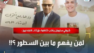 شوقي سليمان يكتب ((كلمة حق)) لـ الأنباء نيوز : لمن يفهم ما بين السطور ؟!!