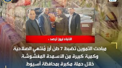 الأنباء نيوز ترصد : مباحث التموين تضبط 7 طن أرز مُنتهي الصلاحية وكمية كبيرة من الأسمدة المغشوشة خلال حملة مكبرة بمحافظة أسيوط
