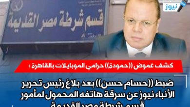 كشف غموض ((حودة)) حرامي الموبايلات بالقاهرة : ضبط ((حسام حسن)) بعد بلاغ رئيس تحرير الأنباء نيوز عن سرقة هاتفه المحمول لمأمور قسم شرطة مصر القديمة