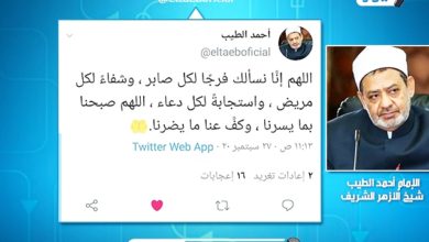 أصدر الدكتور أحمد الطيب شيخ الأزهر الشريف وإمام أئمة المسلمين في بيان مُصور ومكتوب على صفحاته الرسمية ((يوتيوب ، تويتر…