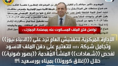 نواصل فتح الملف المسكوت عنه بمصلحة الجمارك : الإدارة المركزية للتفتيش العام ترد على ((الأنباء نيوز)) وتُجامل شركة mts للتعتيم على دفن الملف الأسود لفحص ((شهادات)) المنشأ المُقدمة ((بصور ضوئية)) خلال ((إغلاق كورونا)) بميناء بورسعيد ؟!!